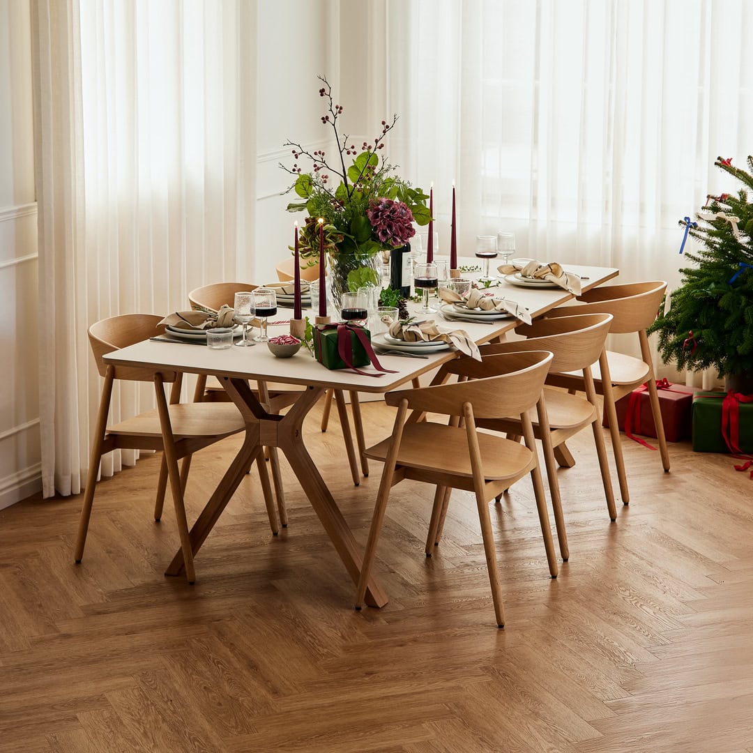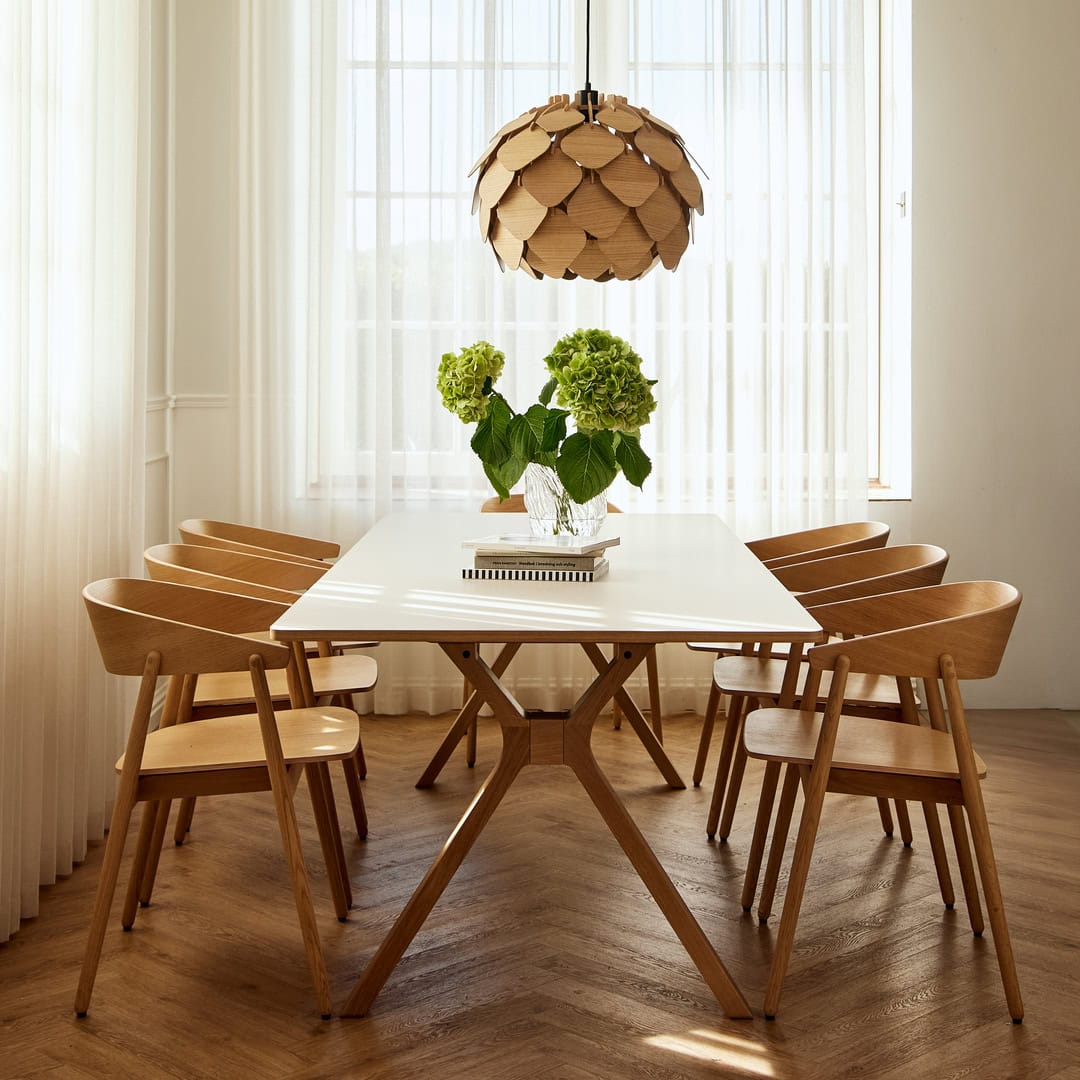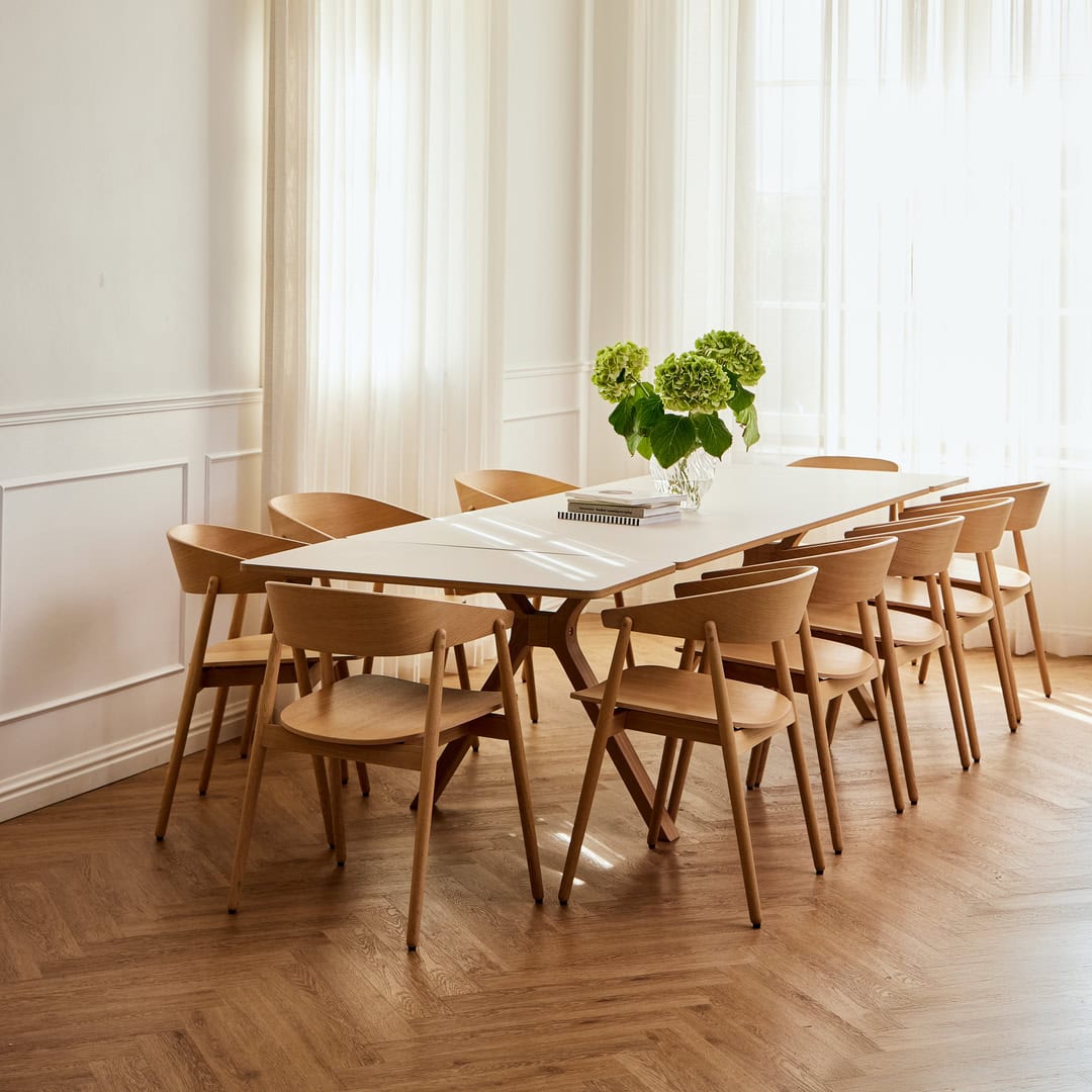 The light tabletop adds a modern and airy expression that fits seamlessly into a wide variety of interiors – from classic Scandinavian minimalism to more colorful and personal homes.